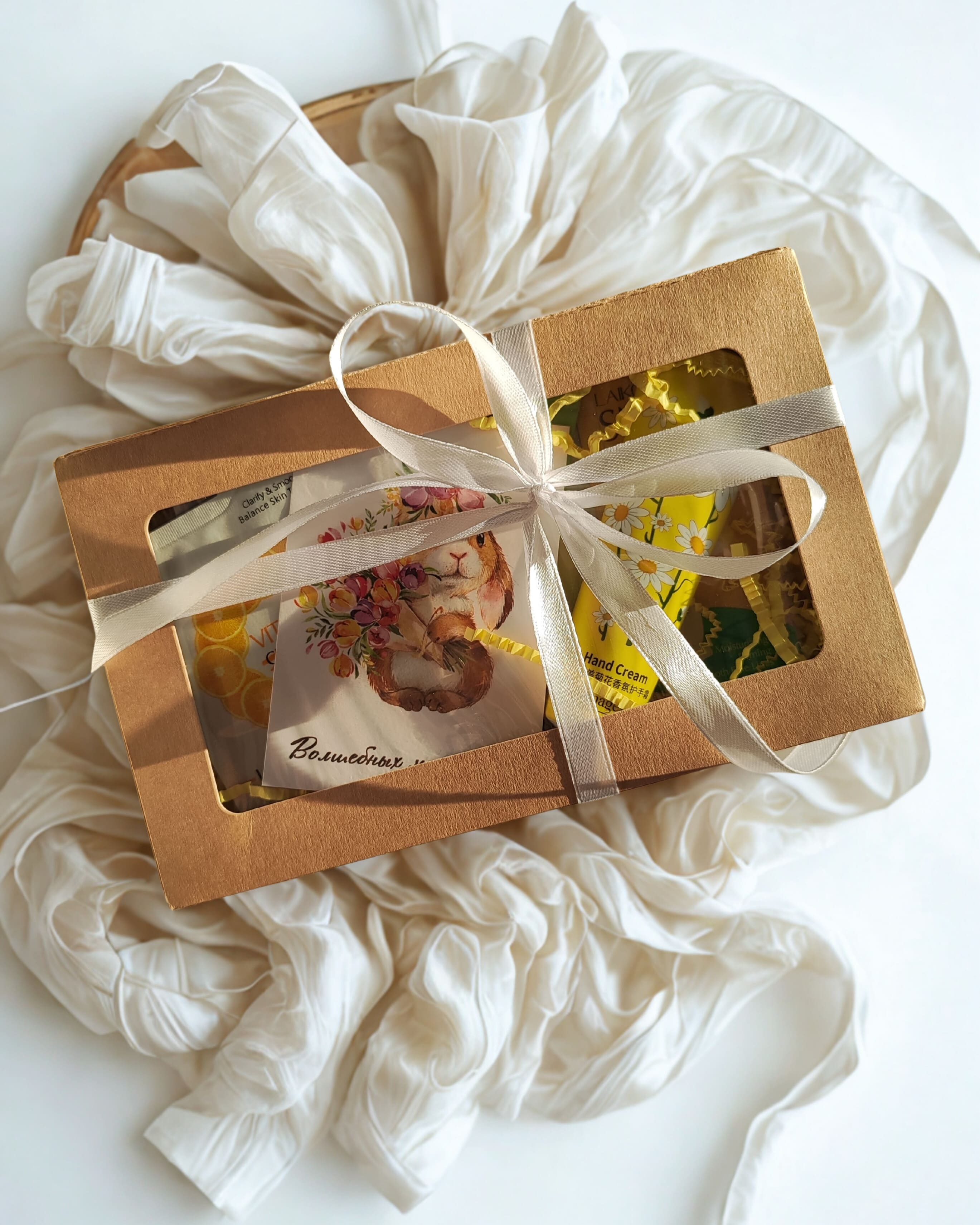 - Подарочная упаковка (коробка, наполнитель, лента)