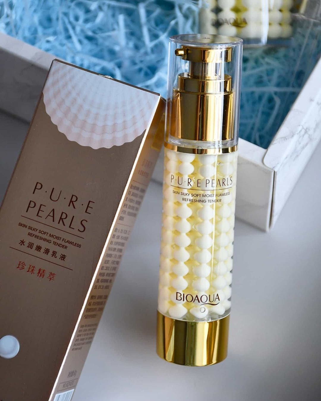 Эмульсия для лица с жемчугом (BIOAQUA Pure Pearls Moist Smooth Lotion) обеспечивает интенсивное и длительное увлажнение кожи, устраняет ощущение стянутости. Улучшает тон и текстуру кожи, уменьшая пигментацию. Придает коже равномерное "внутреннее" свечение, маскирует тусклость. Улучшает тургор и эластичность за счёт стимуляции обновления клеток, визуально сглаживает мелкие морщины и неровности рельефа.
