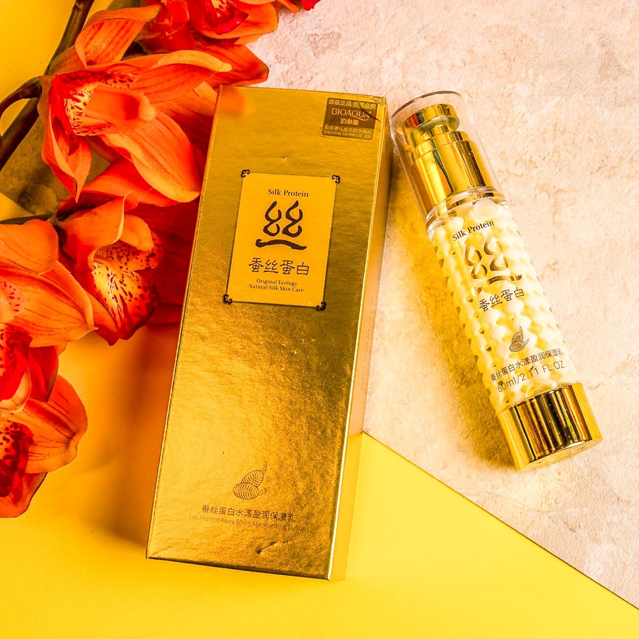 Способ применения: На чистую и сухую кожу нанесите молочко, распределите его и оставьте впитываться. Рекомендуем использовать с другими средствами серии с пептидами шелка.