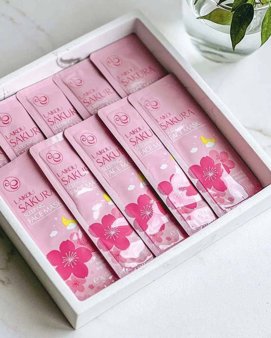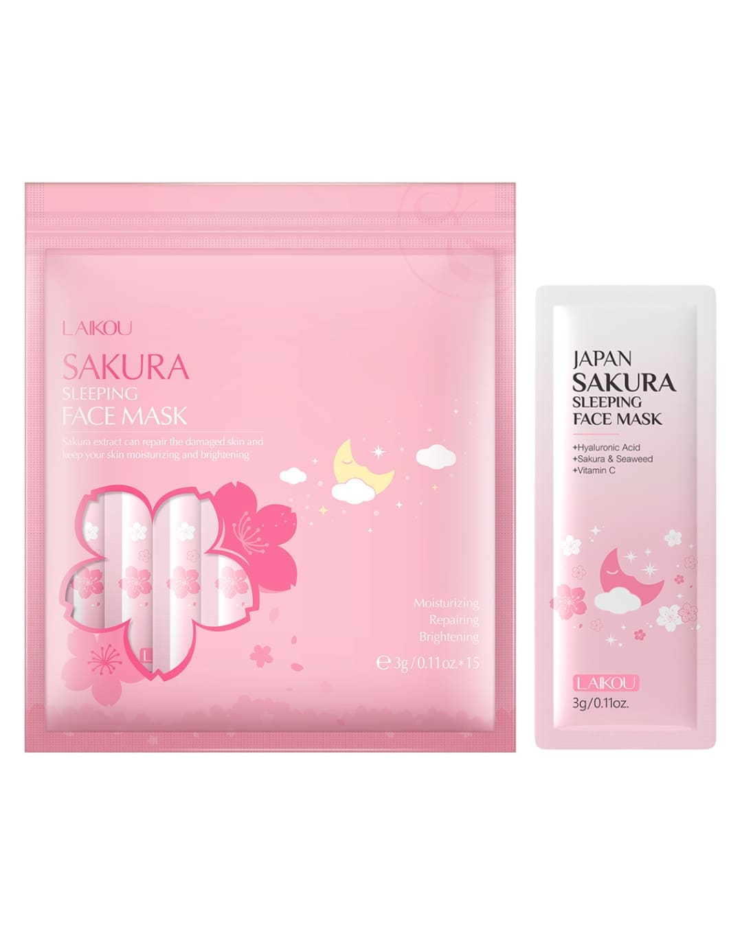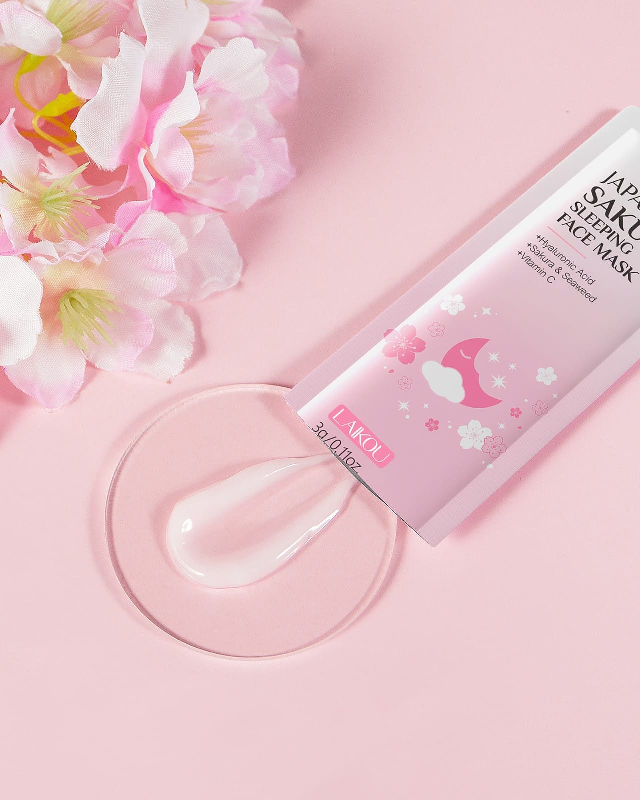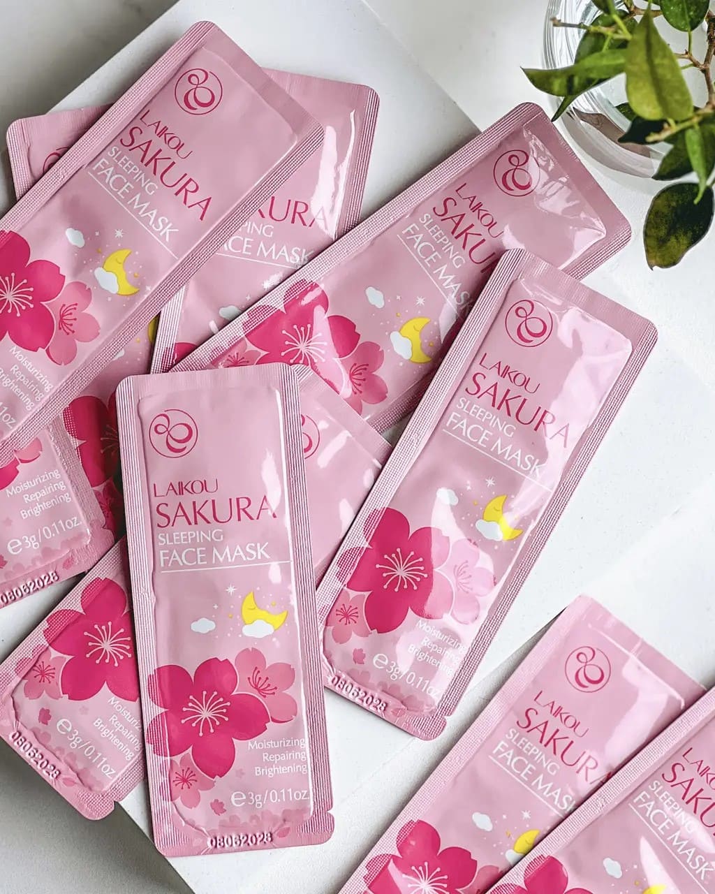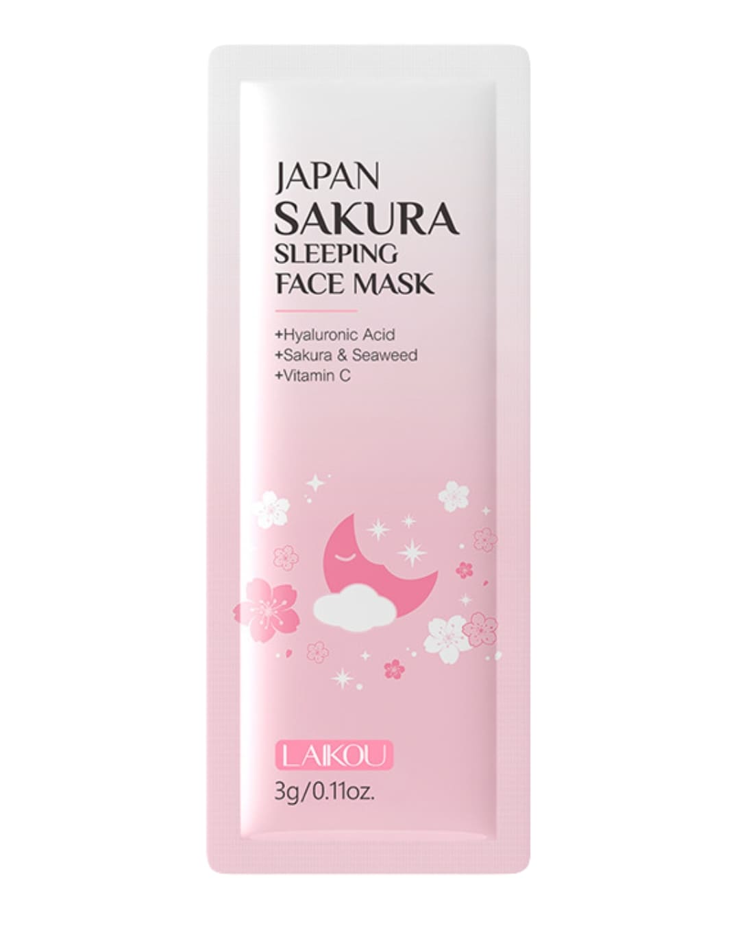 Ночная маска для лица с сакурой (LAIKOU Sakura Sleeping Face Mask) интенсивно восстанавливает и защищает кожу, увлажняет, помогает восстановить потерю влаги, улучшает состояния кожи, делает её свежей и отдохнувшей. Обладает омолаживающим эффектом, борется с преждевременным старением и нейтрализует действие свободных радикалов. Повышает упругость эпидермиса, обладает противомикробным действием, борется с высыпаниями, предотвращает появление прыщей. Осветляет тон кожи, уменьшает пигментацию и пост‑акне, выравнивает цвет лица, придаёт сияние.