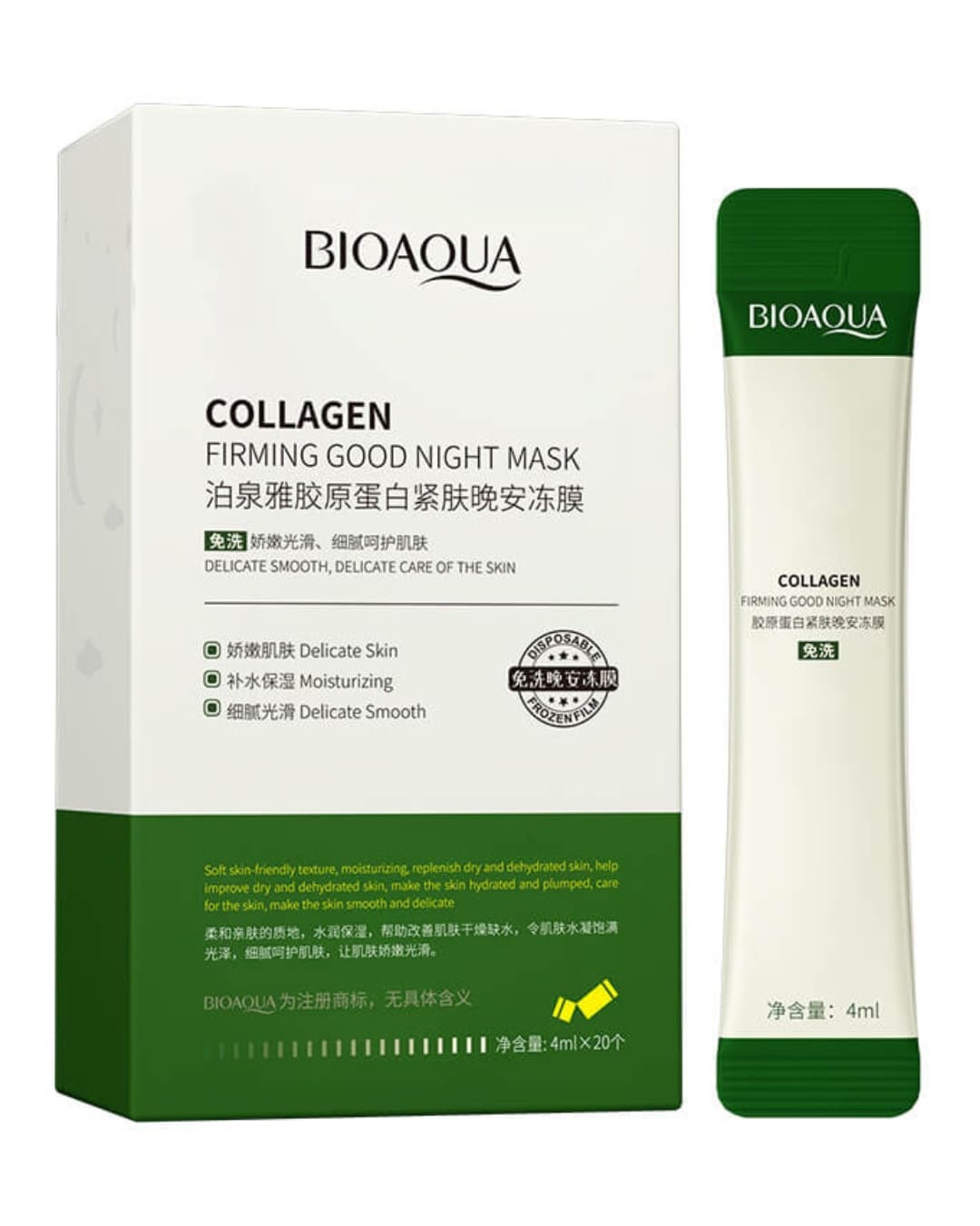 Ночная маска для лица с коллагеном (BIOAQUA Collagen Firming Good Night Mask) существенно замедляет течение возрастных изменений, оказывая антивозрастное действие. Нормализует гидролипидный баланс клеток, интенсивно питая и увлажняя каждый миллиметр кожи. Восстанавливает эластичность и упругость, делает кожу лица нежной и бархатной. Маска также оказывает активное противовоспалительное действие, хорошо снимает воспаления, нормализует работу сальных желез, обладает подсушивающим и антисептическим действием.
