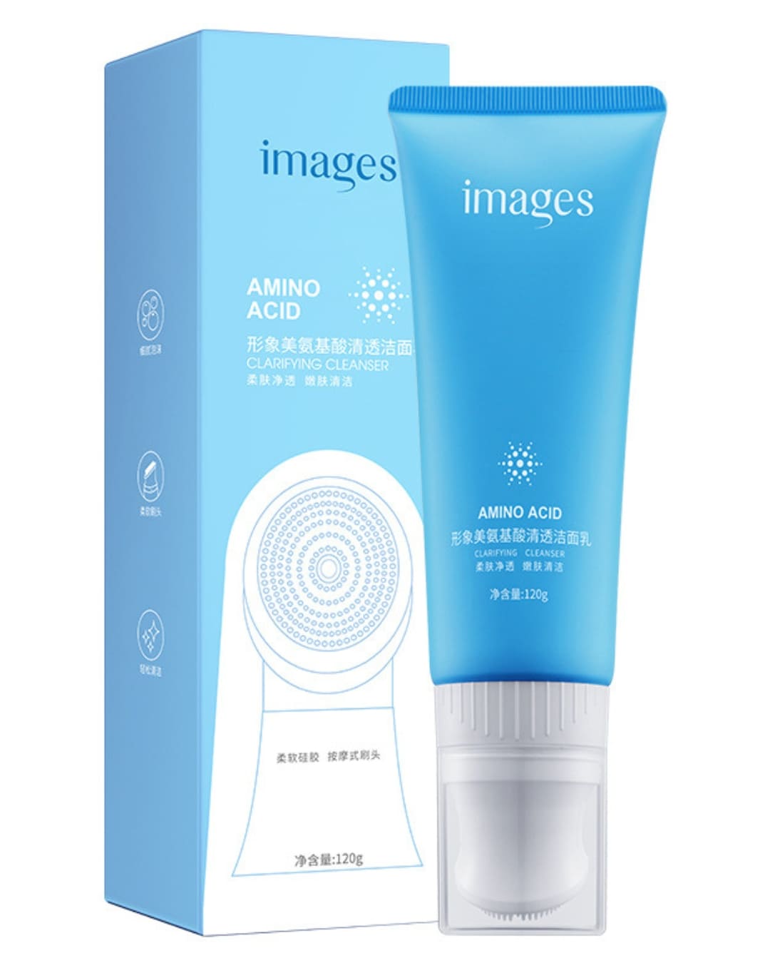 Гель для умывания с аминокислотами и массажной щёточкой (IMAGES Amino Acid Clear Skin And Cleanser) обеспечивает деликатное очищение и мягкий массаж, способствуя улучшению состояния кожи. Эффективно удаляет остатки макияжа, кожный себум, загрязнения и омертвевшие клетки, не нарушая естественный гидролипидный барьер. Аминокислоты активно увлажняют кожу, восстанавливают её упругость и эластичность, защищают от окислительного стресса и замедляют процессы старения.