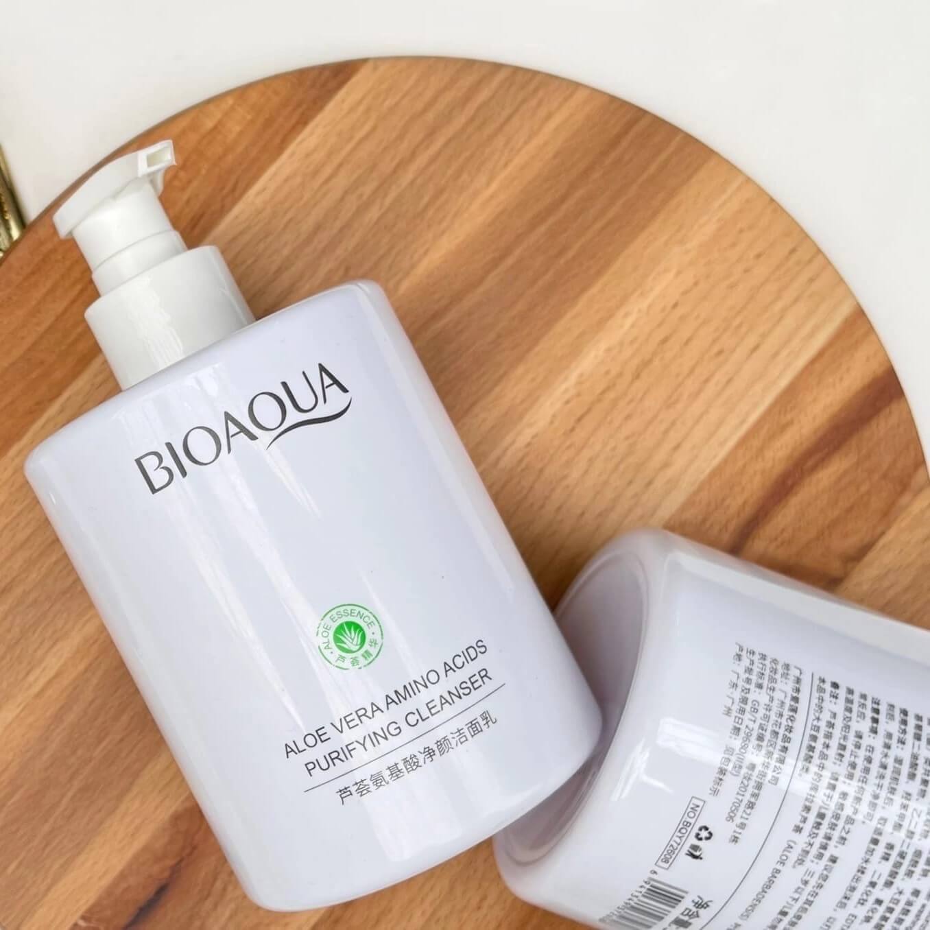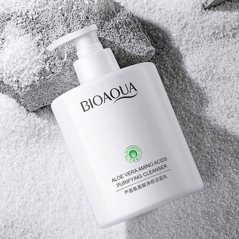 Молочко-пенка для умывания с алоэ и аминокислотами (BIOAQUA Aloe Vera Amino Acids Purifying Cleanser) отлично очищает кожу от различных загрязнений, способствует сужению пор, борется с воспалительными процессами и покраснениями, предотвращает появление новых, уменьшает жирный блеск, не пересушивая кожный покров. Кожа увлажняется, восстанавливается, становится упругой и эластичной, выравнивается тон лица.