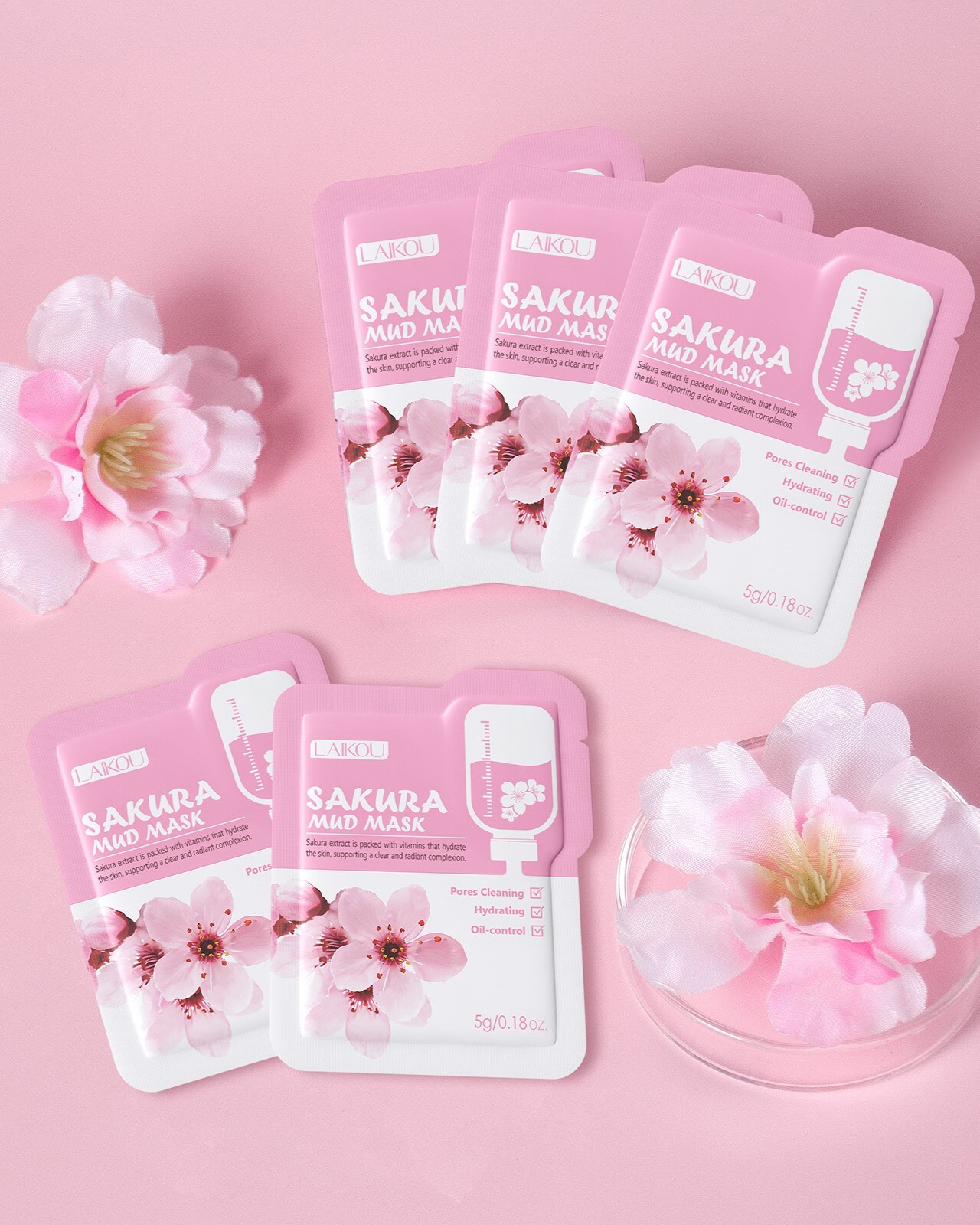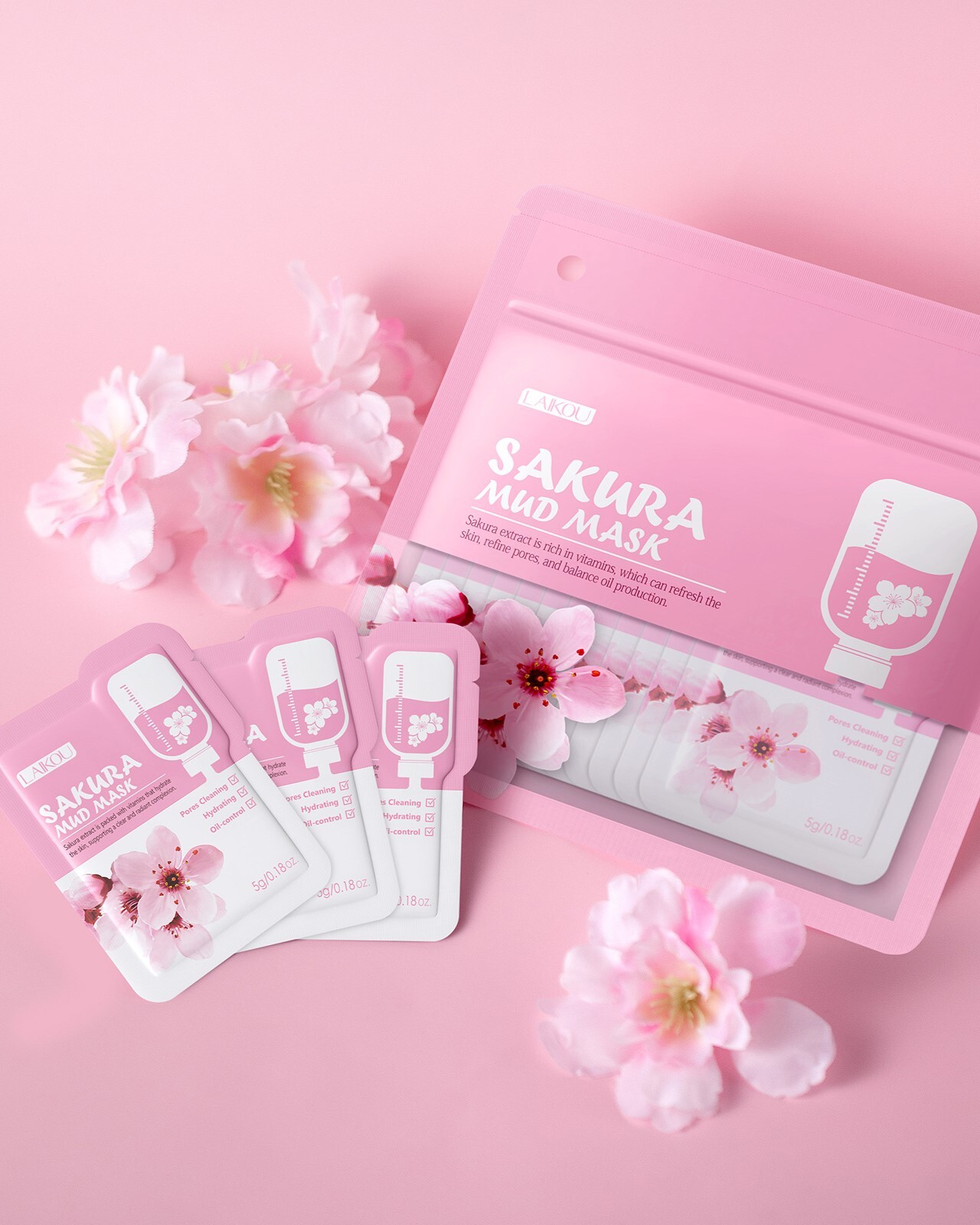 Глиняная маска для лица с сакурой (LAIKOU Sakura Mud Mask) эффективно и глубоко очищает поры, мягко отшелушивает кожу, борется с акне, контролирует выработку кожного сала, освежает, увлажняет и питает кожу, придаёт нежность, мягкость и сияние.