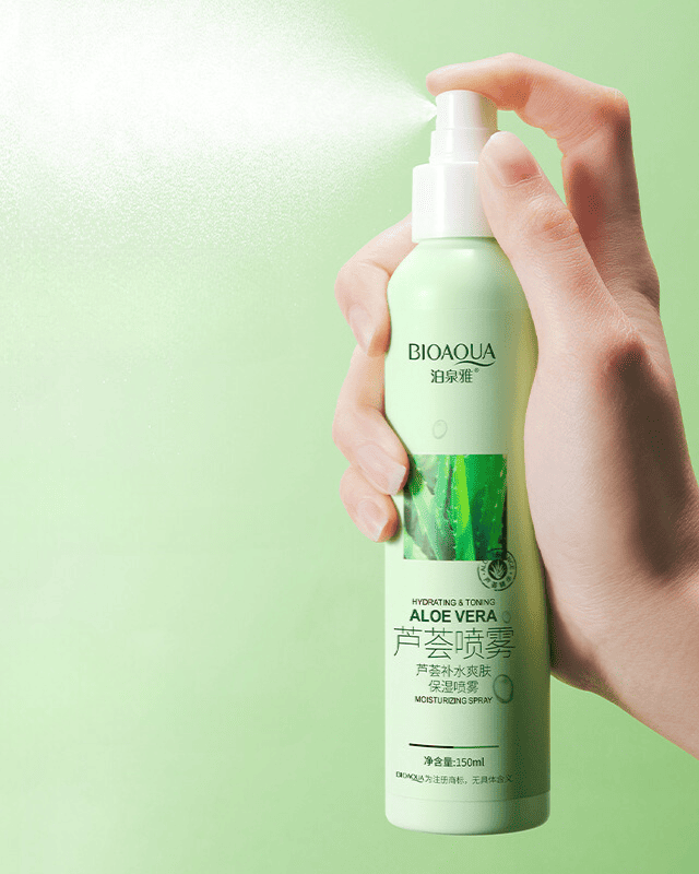 Спрей для лица и тела с алоэ (BIOAQUA Aloe Vera Moisturizing Spray) отлично освежает, тонизирует и глубоко увлажняет кожу, устраняет чувство сухости, предотвращает шелушения, снимает покраснения и оберегает от агрессивного воздействия внешних факторов. Он легко распыляется и дарит комфортные ощущения.
