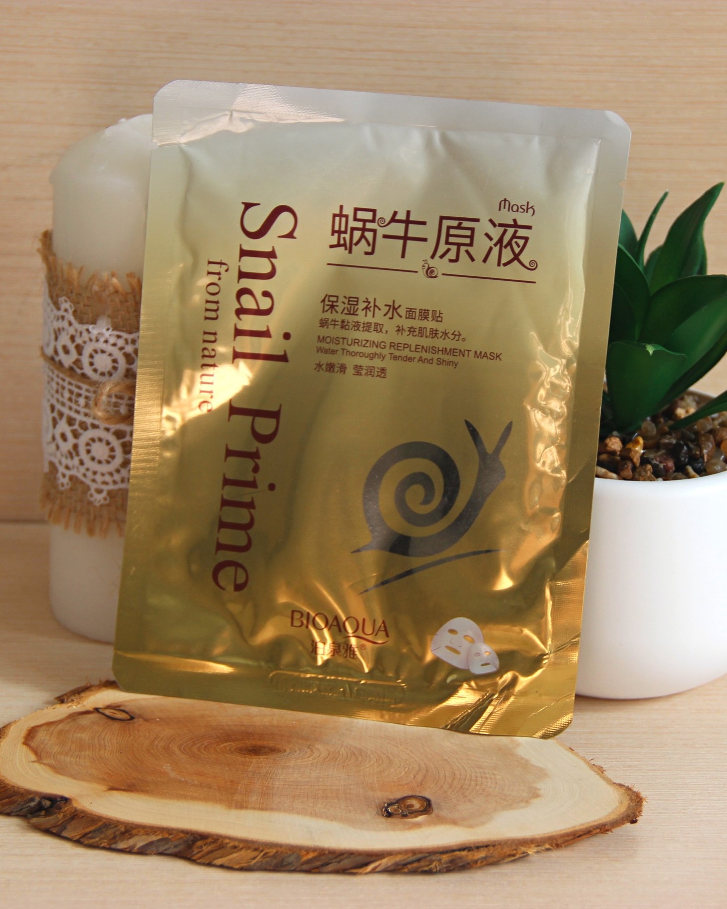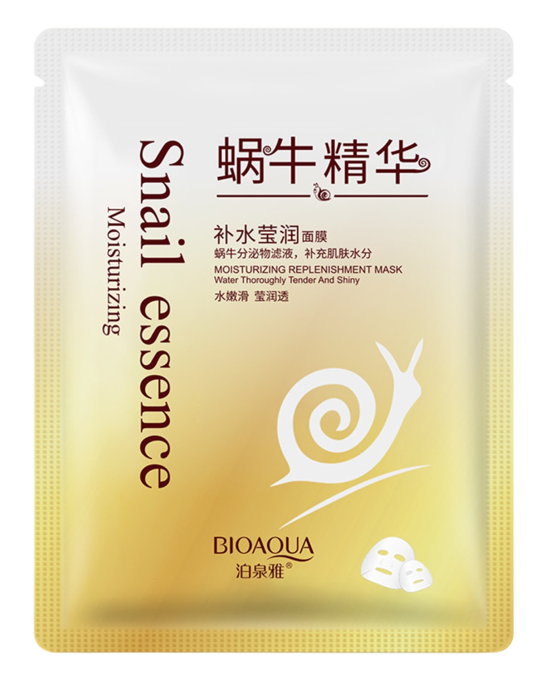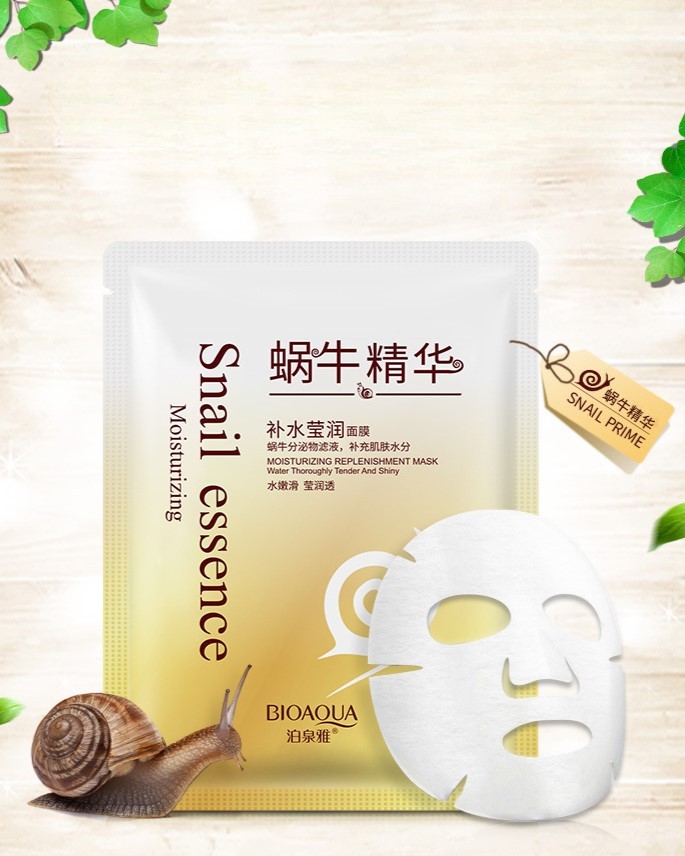 Тканевая маска для лица с муцином улитки (BIOAQUA Snail Essence Moisturizing Replenishment Mask) глубоко увлажняет и питает, ускоряет собственные регенерационные процессы в коже, успокаивает раздражения и покраснения, способствует заживлению. Активизирует синтез коллагена и эластина, поддерживает упругость, эластичность и тонус кожи, уменьшает морщины, защищает от преждевременного старения. Она также выравнивает тон и рельеф кожи, улучшает микроциркуляцию и барьерные функции.