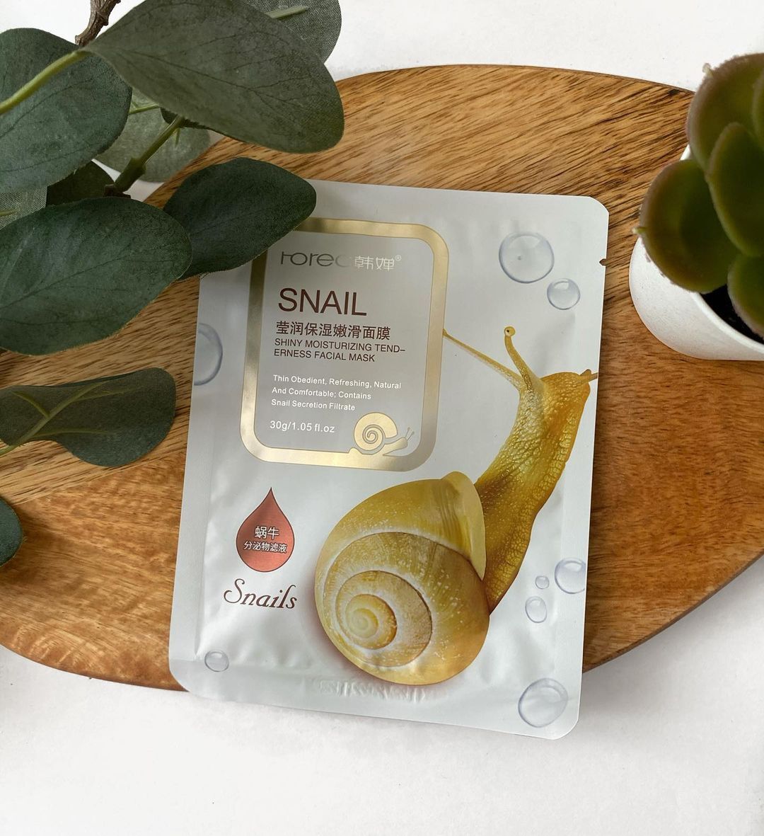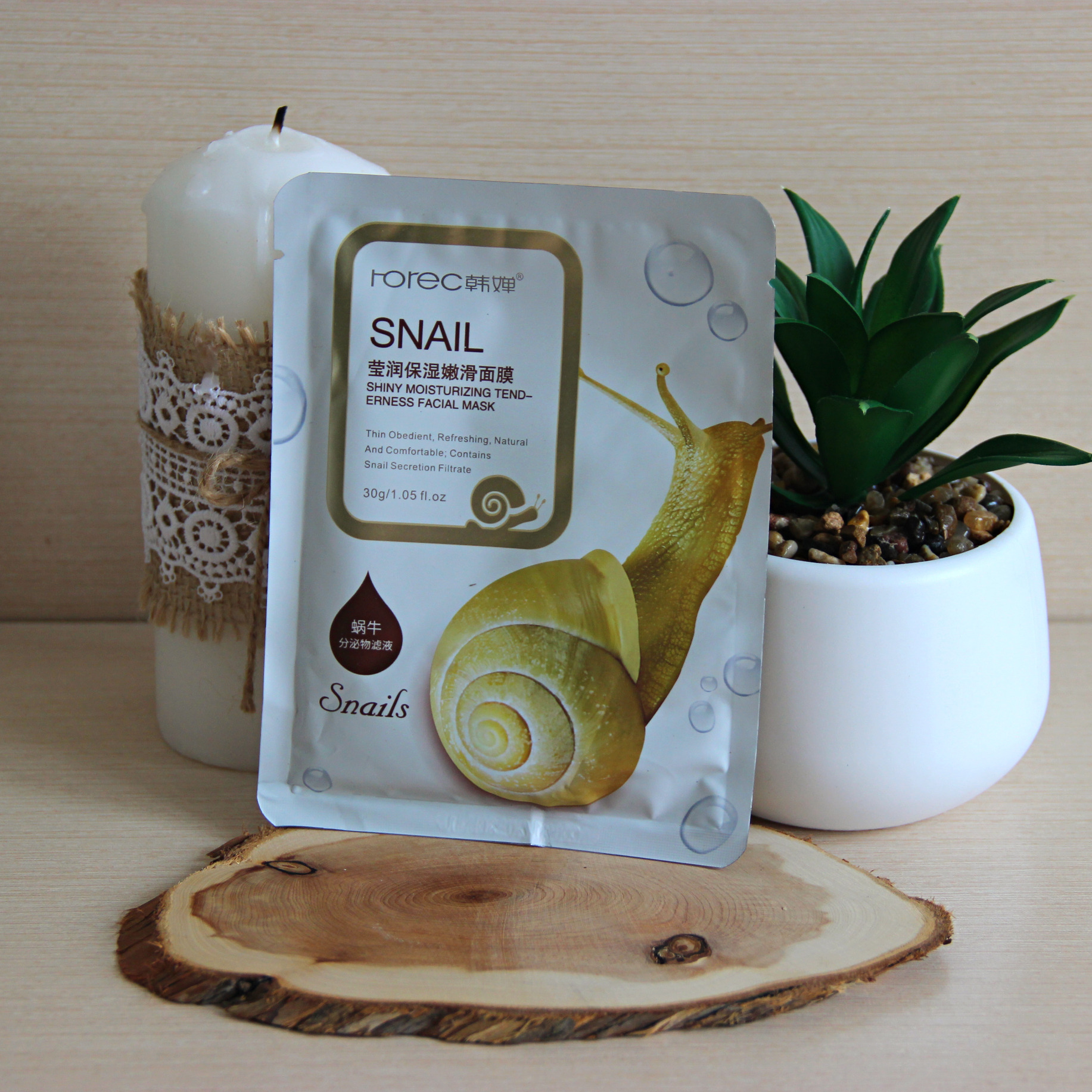 Увлажняет, восстанавливает, придает коже упругость, эластичность, здоровый цвет. Главный компонент маски - фильтрат (муцин) улитки, обладает действенным эффектом для регенерации и поддержания тонуса кожи, устранения сухости, насыщения её питательными веществами и борьбой с возрастными изменениями.