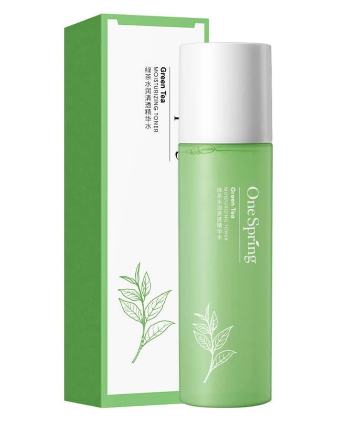 Тонер для лица с зелёным чаем (ONE SPRING Green Tea Moisturizing Toner) обладает легкой освежающей текстурой, глубоко увлажняет кожу и защищает ее от потери влаги, устраняет отечность и улучшает цвет лица, нормализует pН-баланс, успокаивает воспаления, снимает раздражения кожи и предотвращает появление морщин.