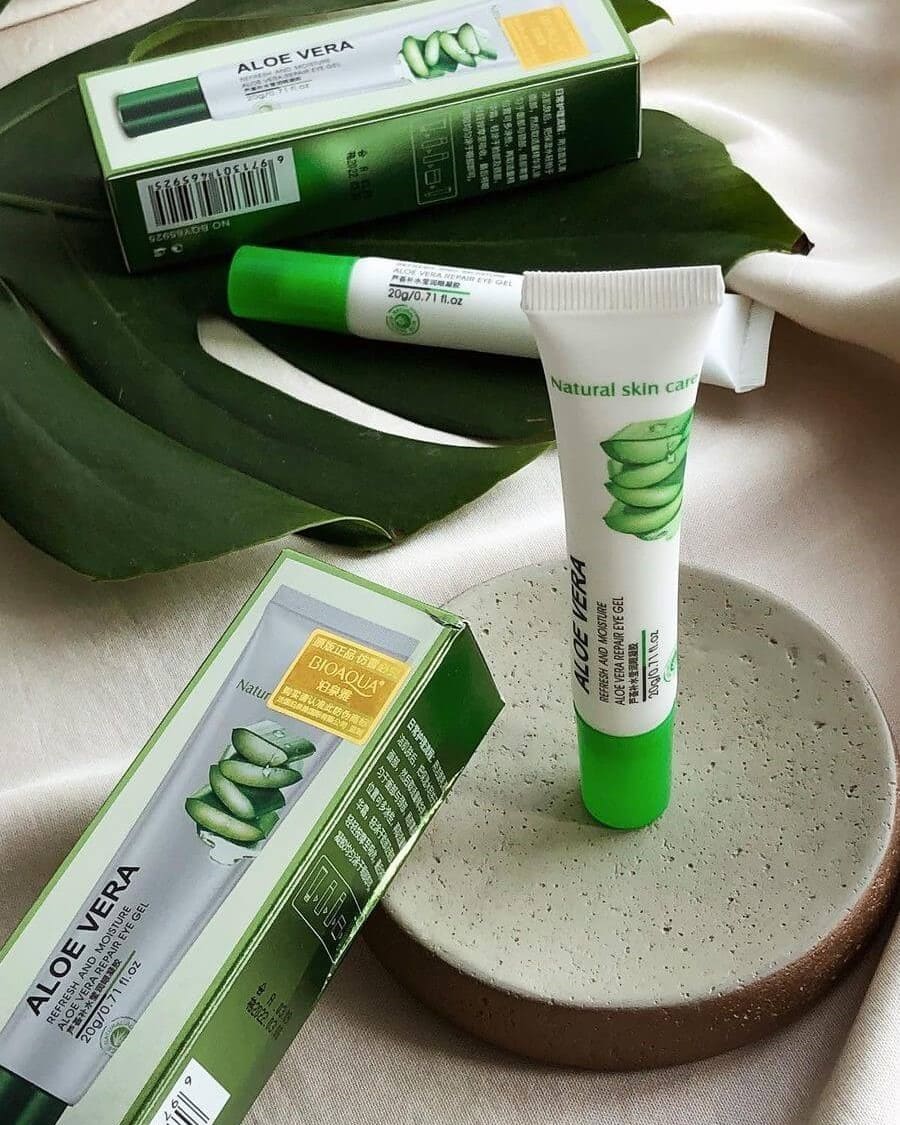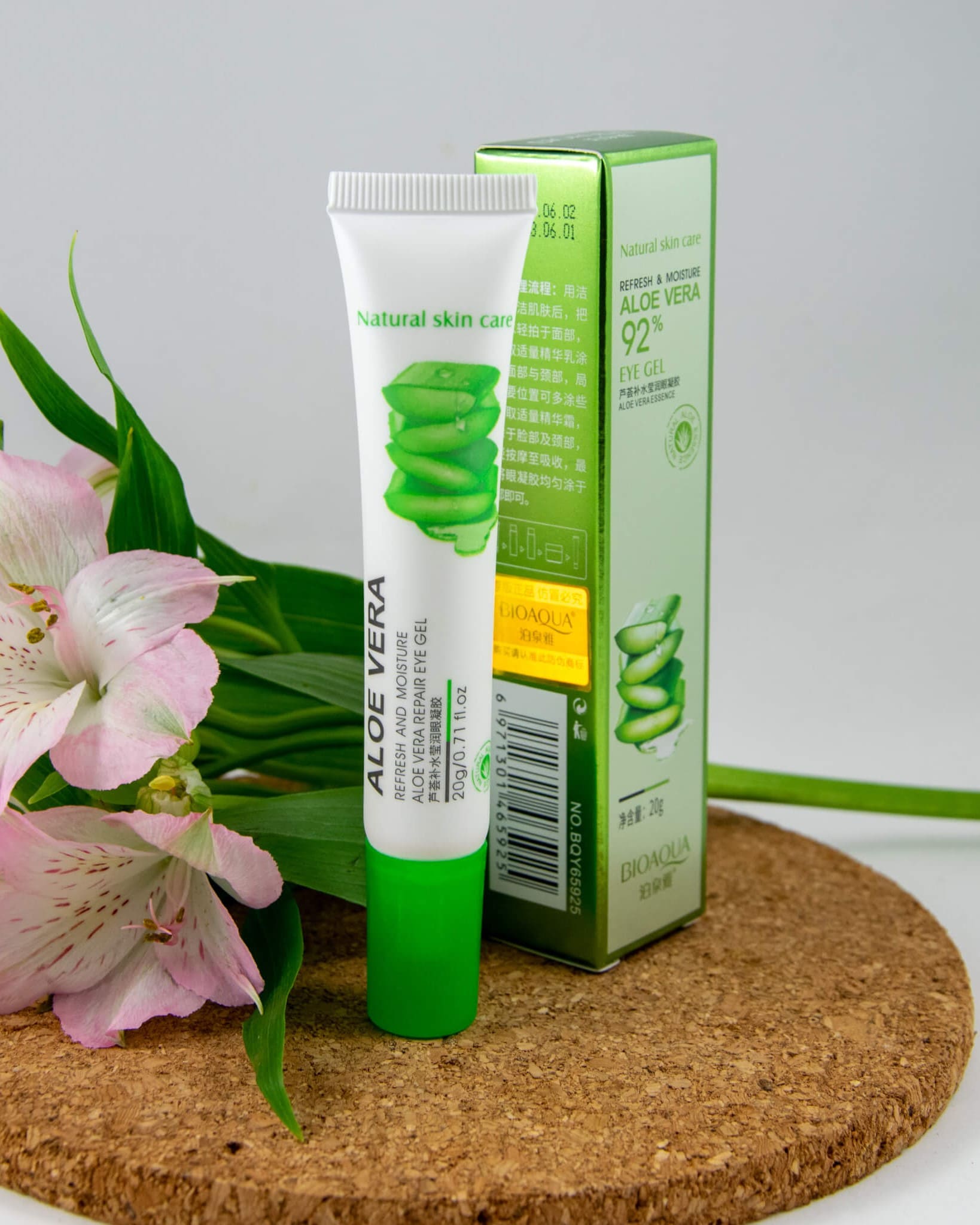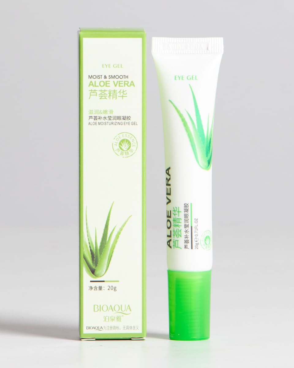 Гель для кожи вокруг глаз с алоэ (BIOAQUA Aloe Vera Moisturizing Eye Gel) - легкое успокаивающее средство, направленное на интенсивное увлажнение, снятие отечности и тонизирование тонкой кожи. Имеет легкую гелевую текстуру, которая быстро впитывается, не оставляя липкости, и дарит ощущение свежести. Он моментально успокаивает, эффективно убирает утренние отеки и укрепляет кожу, не перегружая её жирными компонентами. Это идеальное базовое средство для ежедневного увлажнения и свежести взгляда.