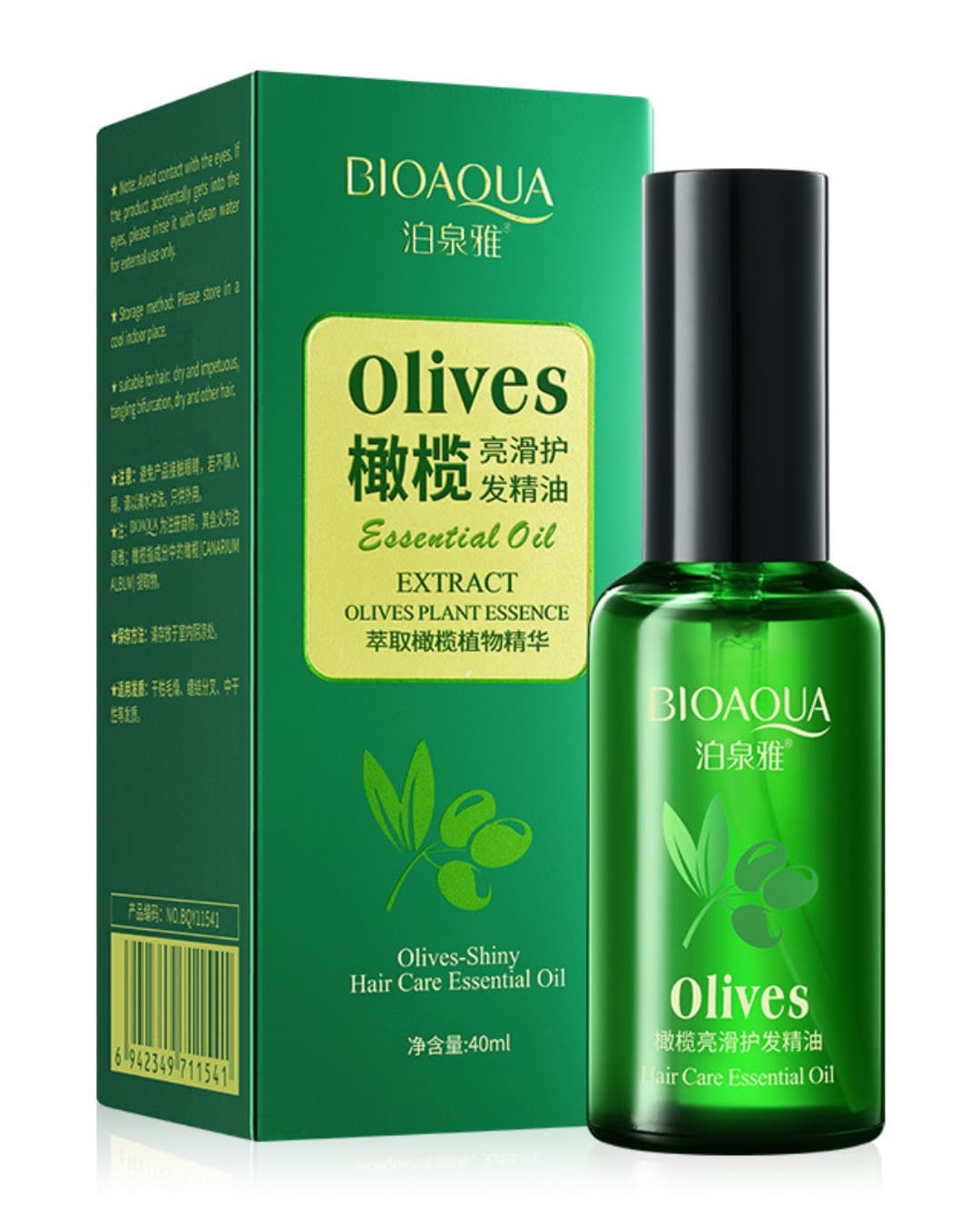 Масло для волос с оливой (BIOAQUA Essential Oil Extract Olives Plant Essence) укрепляет, питает, делает волосы более послушными, сильными и красивыми, пробуждает спящие волосяные луковицы, стимулирует рост волос, предотвращает их ломкость, сечение и выпадение. Масло сглаживает поднятые чешуйки волос, увеличивает плотность и густоту локонов, восстанавливает их гладкость, упругость и эластичность, снимает статическое напряжение, облегчает расчёсывание и укладку.